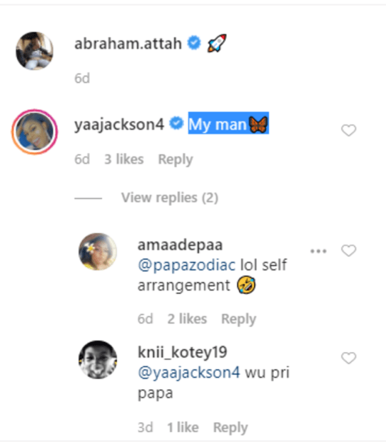 โMy man?,โย she wrote but Abraham acted as if he didnโt see it and this led to social media users to attack yaa Jackson for trying to catch the attention of the young man.