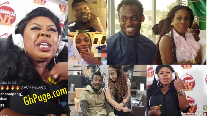 Former Black star teammates Michael Essien and Asamoah Gyan have become the latest victims to experience the ugly side of controversial media personality Afia Schwarzenegger after they mock her and other celebrities in a live video chat.