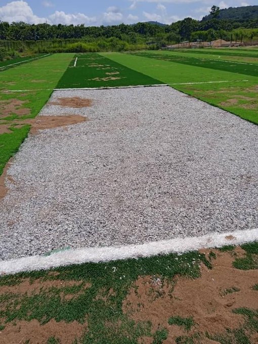 Sharing photos on social media, Sports Journalist Sadick Adams reported that the pitch which was to be a multipurpose field could not be finished as a major part have been stolen.