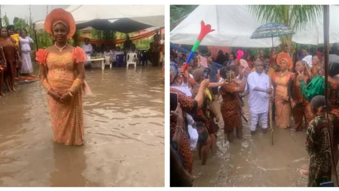 In a heartwarming show of love and resilience, a couple, Mr and Mrs Nsima, conducted their traditional wedding amid heavy rainfall in Ibiaku Awat Nkang community in Ibiono Ibom local Government Area of Akwa Ibom State.