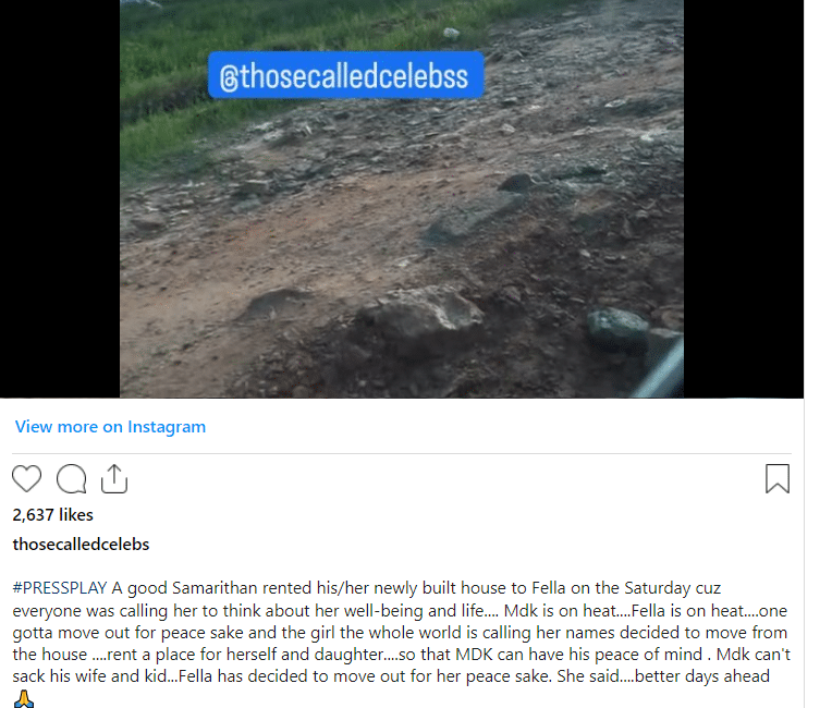 Well, Ghanaian blogger, Thosecalled Celebs has disclosed why Fella Makafui decided to pack out of the house she claims she built with Medikal.