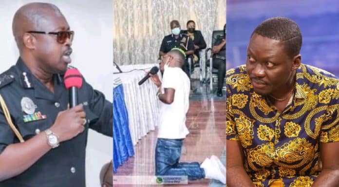 Following Shatta Wale’s ghetto and rascal behavior at the recently held police meeting with our celebs, a photo of the Dancehall musician kneeling in front of the IGP and COP Kofi Boakye went viral on the local digital space.