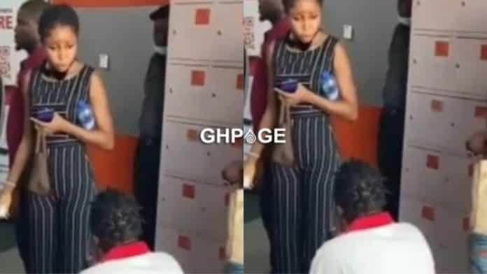 A young struggling guy was gravely disgraced by his girlfriend inside the banking hall after he want on his knees to propose marriage to him.