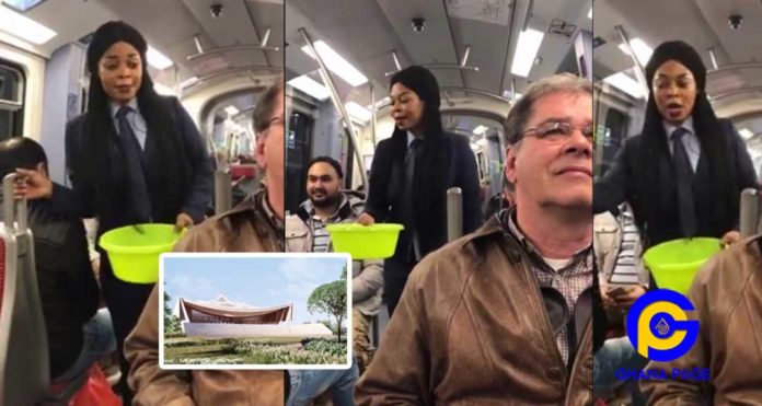 Joyce Dzidzor Mensah the former HIV-AIDS Ambassador has just shared a video of herself begging for money in a train in Germany to raise funds for the building of Ghana’s National Cathedral.