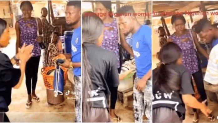 The furious girlfriend who was venting in Yoruba language slapped him before ordering him to return the phone she bought for him.