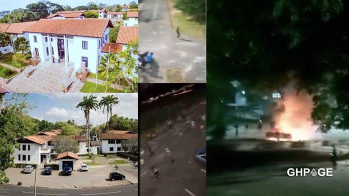 A car on campus which was parked in front of Mensah Sarbah hall was also burnt by the angry students.