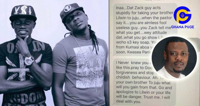 The person also added that Zack will run away from Kumasi soon or death will even be easier for him soon. His/her threats come from the recent prophecy from Nigel Gaisie about Lilwin and his former manager, Zack.