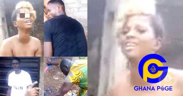 The men who were poised to do everything and anything to retrieve their phone from the young lady whether she stole the phone or not undressed the lady with the help of another elderly woman who could even be the grandmother of the girl.