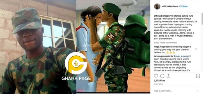 A Nigerian soldier has who is nurturing heartbreakย has narrated on how his girlfriend now ex of two years secretly got married to another man while he was away in the fight against Boko Haram.
