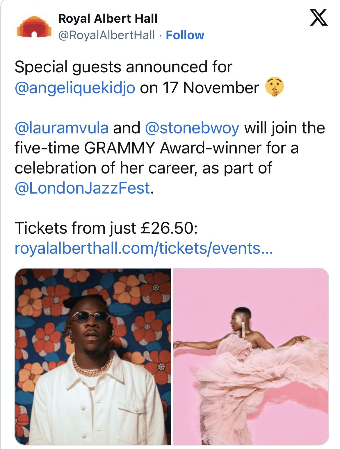 The event which will happen at London’s most iconic venue, the Royal Albert Hall will celebrate the career-spanning catalogue of Angelique Kidjo.