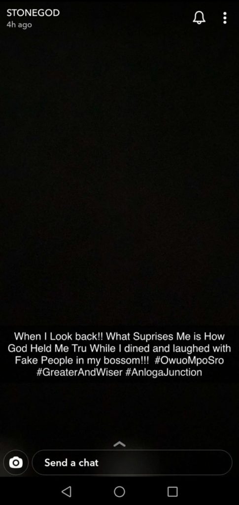 The Bhim Nation president Stonebwoy has in a post on Snap chat subtly shaded his former label signees and manager, referring to them as fake people.